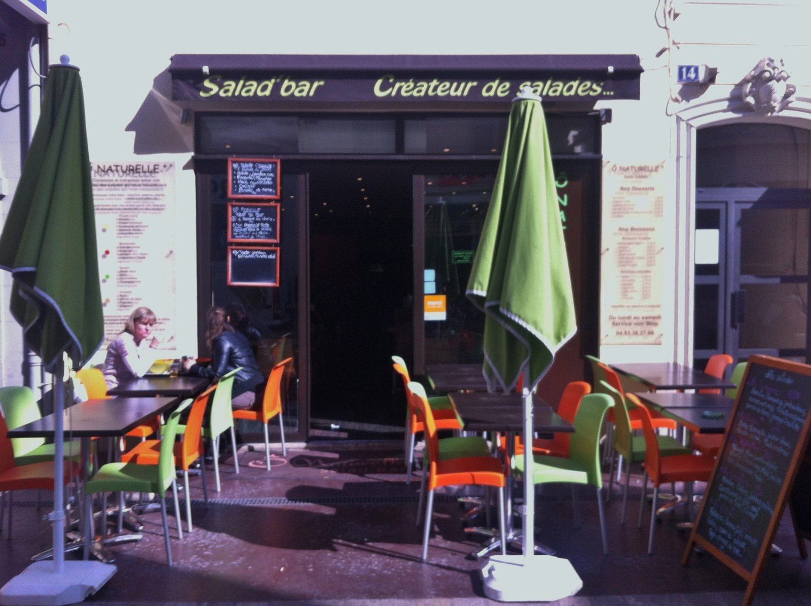 Vous pouvez manger sur place ou à emporter. Les prix restent les mêmes. De 30cts à 2€ selon les aliments qui composent votre salade, pas de mauvaise surprise tout est indiqué.